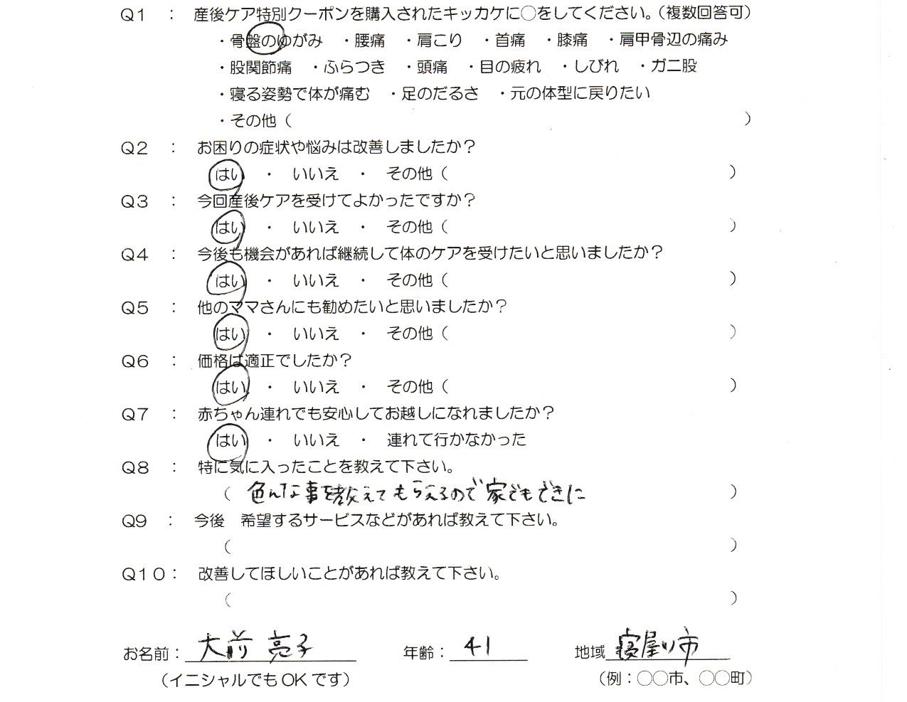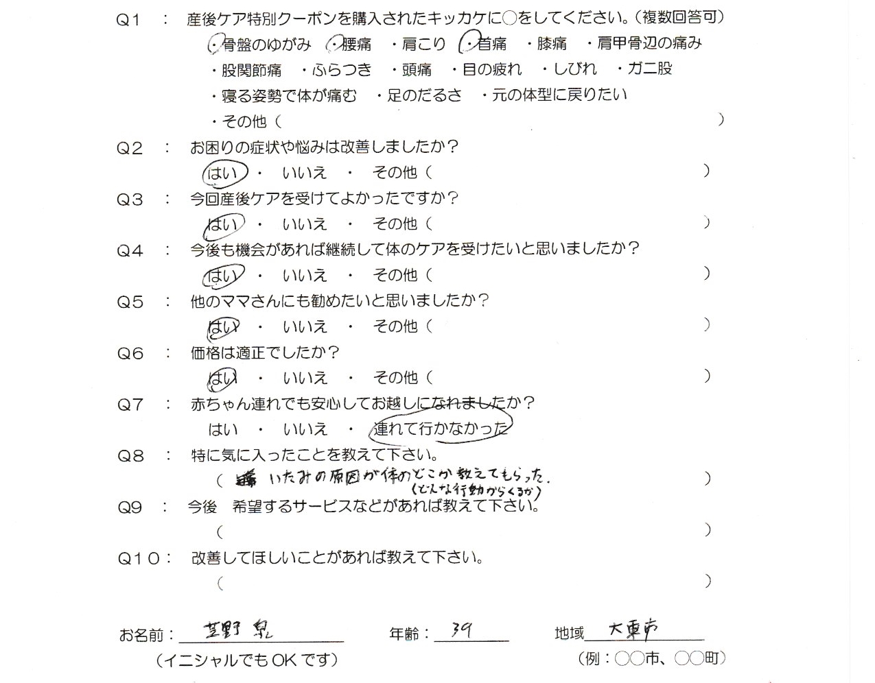 9.大東市南津の辺町 28歳 M.S様からのお声