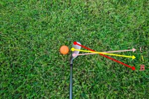 A:飛球先に対し、フェイス面が並行になるよう引く